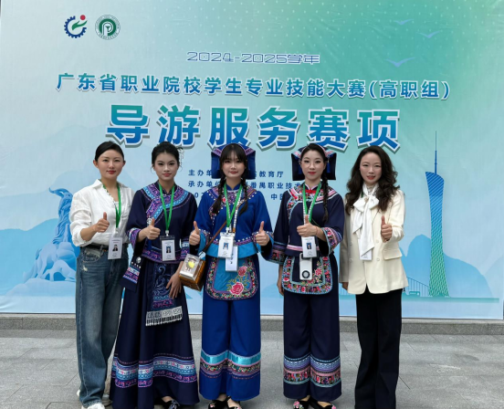 2025年3月12日至13日,2024-2025学年广东省职业院校技能大赛(高职组)“导游服务”赛项在广州番禺职业技术学院举行,全省56所高职院校、214位选手同台竞技。经过激烈角逐,旅游管理专业群教师伍新蕾、史万莉指导学生陈钰婷、陈心怡、赵芷琪,荣获全省第二名、大赛一等奖。