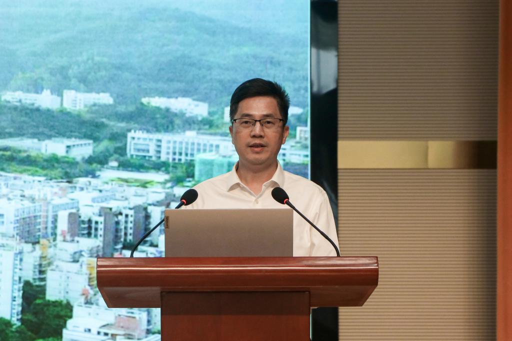 在政策解读环节,袁光华副校长对《高等职业学校办学能力评价实施方案(2025—2030年)》进行了系统阐释。他从国家职业教育评价发展脉络切入,深入剖析了本次办学能力评价的新导向、新特点与新要求,并结合广东省A类院校评价标准,重点解读了10项办学条件监测指标和教育教学关键要素评估要点。袁光华强调,各部门须严格对标、压实责任,按照学校统一部署推进各项工作,确保任务落地、目标达成。