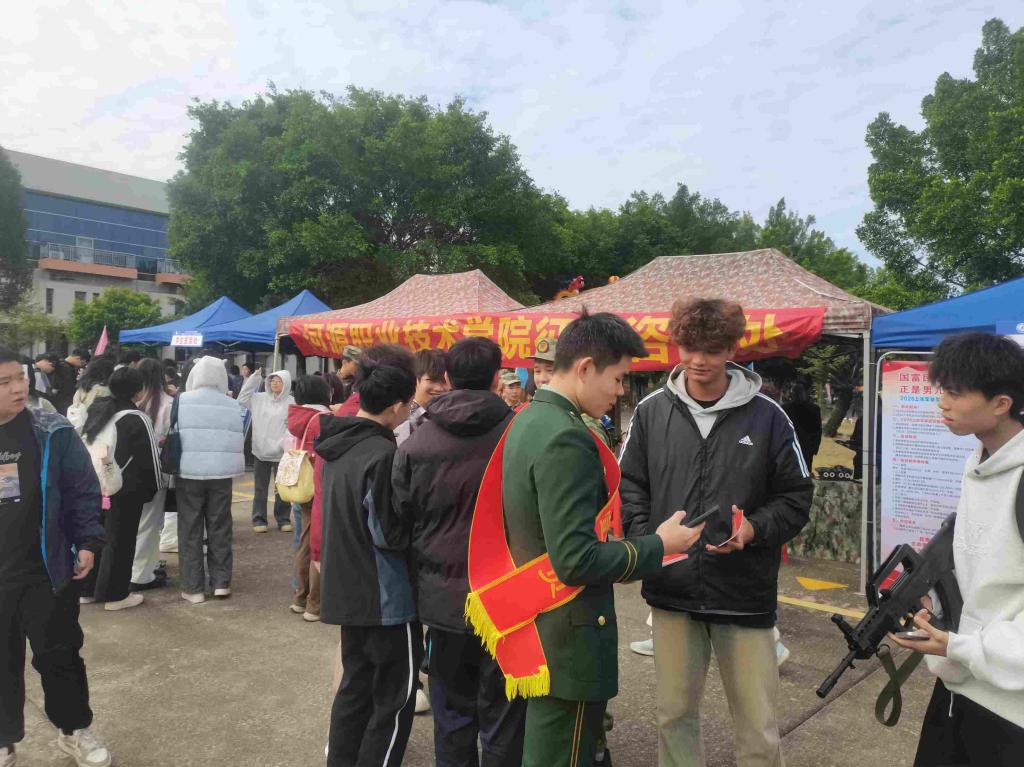 活动中,学校退役士兵化身征兵宣传员,通过分享“军营淬炼成长”的真实军旅经历,详细解读了大学生的入伍条件、报名流程、优惠政策、春季征兵、“直招军士”以及学费补偿等政策红利,引导激励我校学子携笔从戎、立志强军报国。
