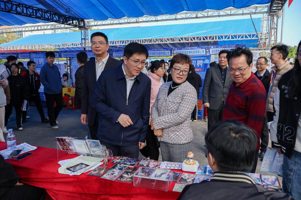 11月21日,2025年河源市“百万英才汇南粤”暨高校毕业生“就”在金秋“职”引未来校园招聘活动在我校贤能广场隆重举行。活动由河源市人力资源和社会保障局与我校联合主办,市人社局副局长谢振球、我校校长刘贻新、副校长姚家芳等领导出席活动,各学院院长、副书记、辅导员亲临现场指导,校企办与企业在现场进行直接对接,现场人头攒动、气氛热烈。