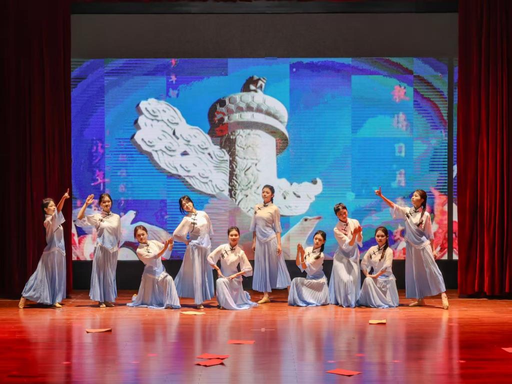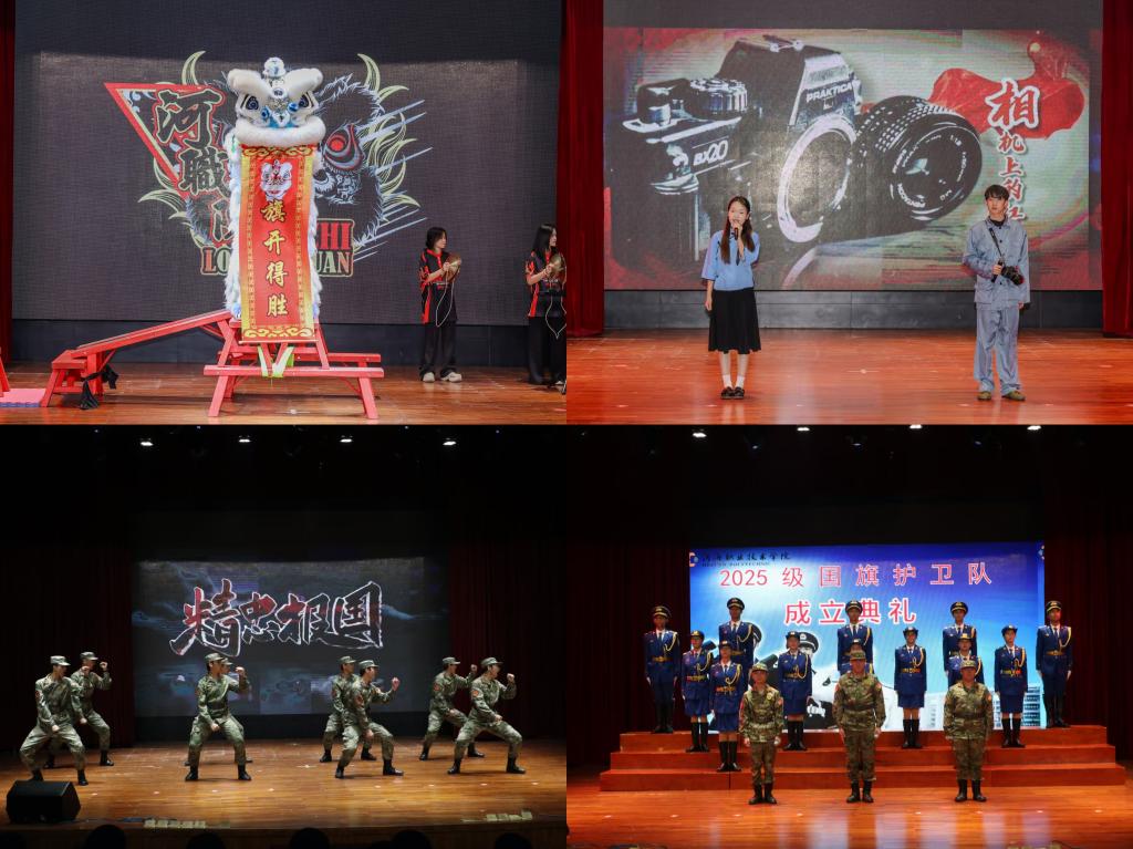 本次典礼还举行了国旗护卫队风采展示活动。舞狮表演刚劲有力;朗诵《相机上的红丝绳》通过情景朗诵演绎家国情怀;国旗护卫队进行军事技能展示,匕首操、军体拳、女子枪操轮番上演;大学生艺术团舞蹈队带来舞蹈《觉醒年代》;音教学子带来铿锵有力的合唱《强军战歌》。最后,全体参会人员合唱《歌唱祖国》,歌声整齐洪亮,将现场气氛推向了最高潮,本次典礼也在这激昂的歌声中圆满落幕。