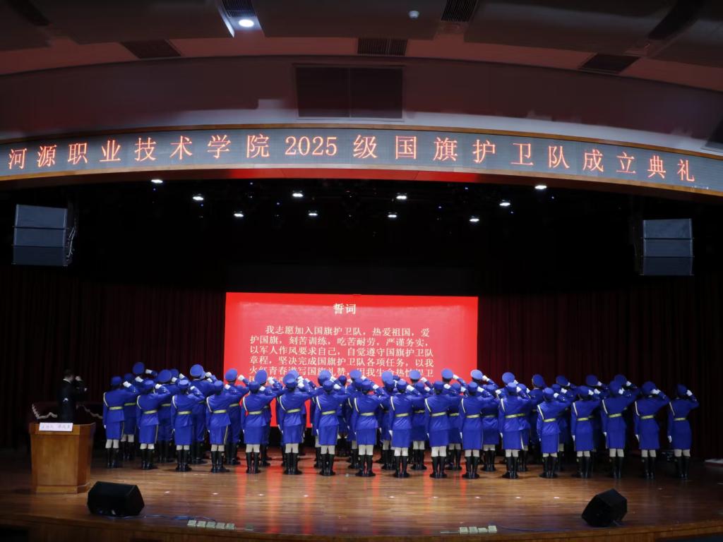 12月8日下午,我校在艺术楼演播厅隆重举行好博网页版登录入口_好博(中国)2025级国旗护卫队成立典礼。校长刘贻新、副校长姚家芳及各职能部门负责人出席典礼,师生代表共同见证了这一庄严时刻。学工处处长廖远来主持典礼。