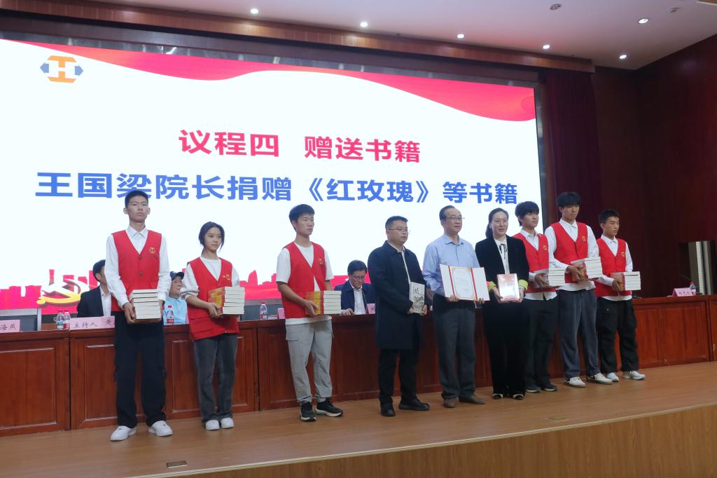 随后,红十一军军长古大存嫡孙、广东南方红色文化研究院副院长古汉援深情回顾了先辈的革命事迹。紧接着,举行了赠书仪式,王国梁向河职院赠送《红玫瑰》等红色书籍。