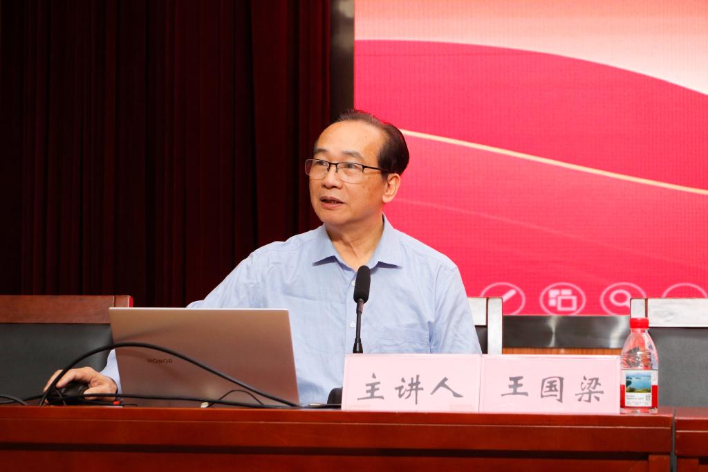 活动最后,由王国梁作《学习革命前辈家国情怀,为建设现代化强国而奋斗——长篇党史文学<红玫瑰>的故事和创作感受》主题讲座。王国梁围绕革命故事、创作心得、革命精神等三方面展开深入分享,生动讲述了《红玫瑰》主人公古大存军长“大义灭亲”“爱兵如子”“是救妻子还是保部队”等感人至深的革命故事,勾勒出革命先辈坚定的信仰、非凡的勇气和崇高的品格;深情分享了《红玫瑰》的创作心得,强调了党史纪实文学创作“用脚写作”的重要;深刻阐述了学习古大存军长革命精神的时代意义,即要学习其“舍小我、为大我”的献身精神、不屈不挠的斗争精神以及坚强的党性原则,激励师生为建设现代化强国而努力奋斗。整场讲座史料翔实、语言生动、情感真挚,王国梁将严谨的党史研究与生动的文学叙事相结合,为在场师生带来了一场深刻的思想洗礼和丰富的文化盛宴,现场气氛庄重而热烈,掌声不断。