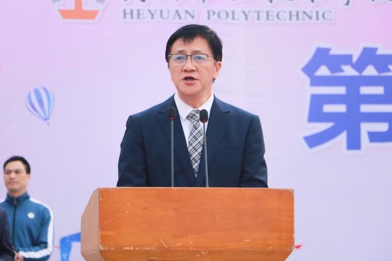 首先,校长刘贻新发表致辞,他向运动会的胜利召开表示祝贺,向筹备人员、全体参赛及工作人员致以敬意。他回顾了第十五届全国运动会粤港澳联合举办的盛况及广东代表团的亮眼战绩,强调体育精神与高职育人理念的同频共振。在刚刚结束的广东省第十二届大学生运动会上,我校健儿披荆斩棘、锐不可当,夺得18个奖项。他指出,学校正构建“大体育”工作格局,打造特色体育品牌,希望全体运动员秉持“更快、更高、更强、更团结”的奥林匹克精神,赛出风格与水平;裁判员坚守公平公正原则,全校师生以赛事为契机热爱运动、强健体魄。
