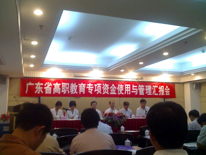 5月7日省教育厅组织部分高职院校在广州召开高职教育专项资金使用与管理汇报会,省教育厅魏中林副厅长、高教处胡振敏处长、吴念香副处长、基建处蔡文雅处长以及全省34所院校院长、教务处处长、实训中心主任等80余人出席了会议,我校陈德清副校长及机电工程系、实训中心相关负责人参加了会议。