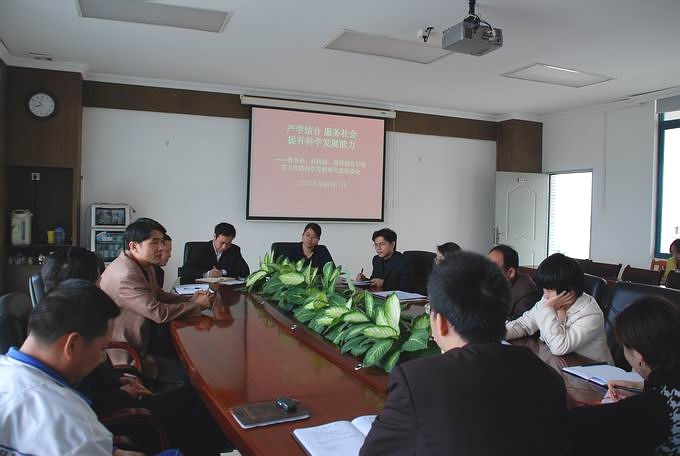 日前,学院教务处、科研处、继续教育学院、教育技术中心四个部门联合召开了学习实践科学发展观交流座谈会。上述部门的全体党员同志参加了会议,陈德清副校长到会并发表重要讲话。