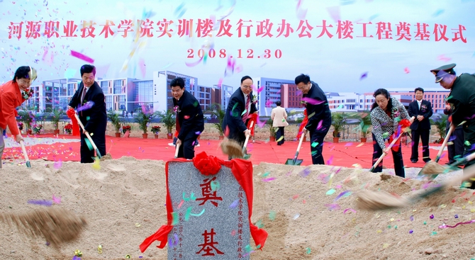 刘校长在奠基仪式上致辞指出,我校为了适应省职业教育发展的新形势,2007年以优异成绩通过教育局高职高专人才培养工作水平评估,2008年我校乘势而上,提出“加快发展、速提内涵”新思路和创建广东省示范性高等职业院校的新目标。经过努力,我校内涵建设取得可喜成绩,教育教学质量迈上了新台阶。他表示,学院实训楼及行政办公楼的动土兴建,必将为广大师生营造一个良好的工作、学习和生活环境,必将有力推动我院创建目标是顺利实现。