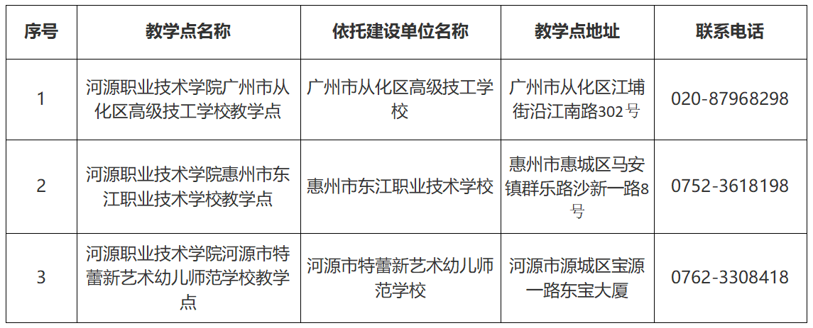 为加强我校高等学历继续教育招生工作管理,确保我校高等学历继续教育合作办学规范、安全、有序,根据广东省教育厅《广东省教育厅关于做好2023年高校高等学历继续教育校外教学点设置工作的通知》(粤教规函〔2023〕1号)等文件精神。经学校党委会议研究同意,现将我校2023年高等学历继续教育校外教学点进行公示,公示时间为2023年1月29日至2月6日。如对公示内容持有异议,请在公示期内以书面形式反映,反映情况和问题应坚持实事求是原则。以个人名义反映情况的,请提供真实姓名、联系方式和反映事项证明材料等;以单位名义反映情况的,请提供单位真实名称(加盖公章)、联系人、联系方式和反映事项证明材料等。