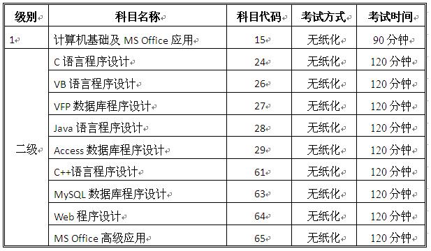 2015年下半年全国计算机等级考试开考科目(好博网页版登录入口_好博(中国)考点)