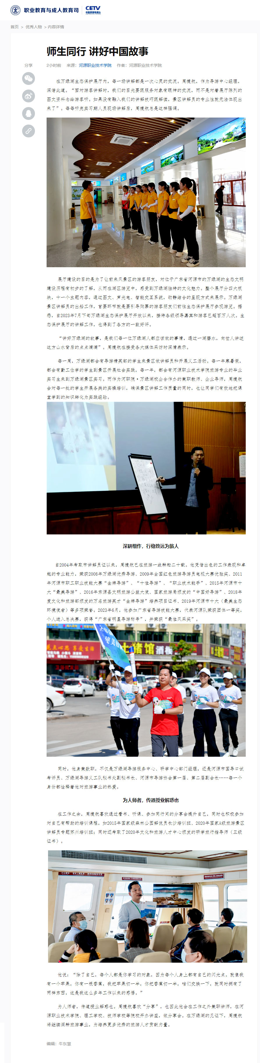 中国教育网络电视台职业教育频道报道我校兼职教师、企业导师周捷航优秀事迹案例