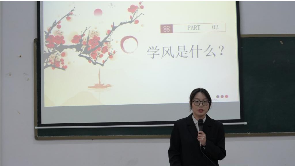 廖晓明副院长代表学院对获得学风建设表彰的集体和个人表示祝贺和肯定,呼吁同学们以张嘉嘉为榜样,积极养成并弘扬优良的学风。他强调,学风建设是一项实实在在的工作,需要大家脚踏实地、扎实推进,共同努力营造出一个积极向上、充满活力的学院氛围。
