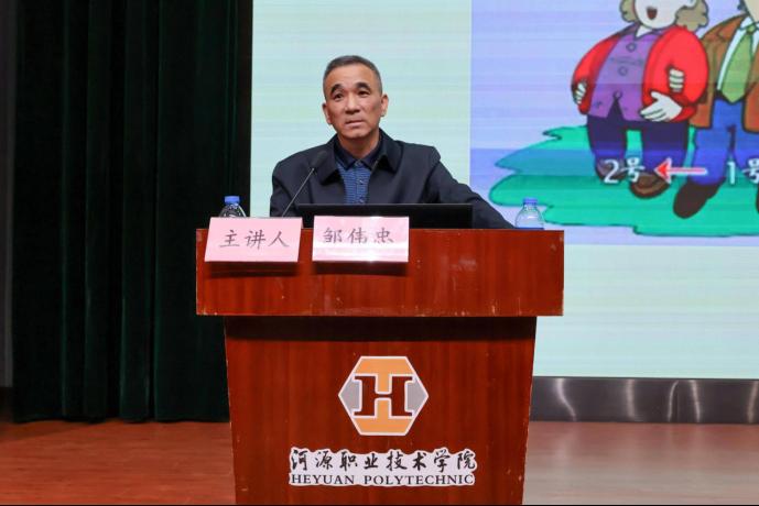 我校资产后勤处何智聪处长、医务室温炜医生组织并参加此次活动。活动当天,内容丰富、形式多样。首先举行的防艾知识专题讲座由市疾控中心专家、艾防所副所长周瑞青担任主讲。专家通过详实的数据、生动的案例,深入浅出地讲解了艾滋病的传播途径、流行现状、预防措施、检测治疗以及反歧视理念等重要内容,为在场师生带来了一堂深刻而实用的健康教育课,现场互动踊跃,反响热烈。接下来,河源市慢性病防治院专家、门诊部副主任邹伟忠主讲性病健康教育讲座,帮助学生们更加全面地认识包括艾滋病在内的多种性传播疾病,从而构建起更坚固的整体健康防线。共有350余名学生聆听讲座。