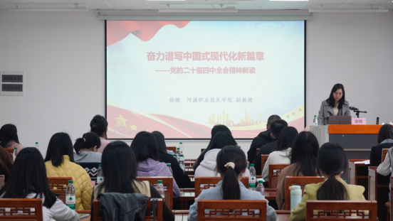 12月2日下午,我院徐微老师赴东源“百千万工程”人才干部培训基地,为国家税务总局河源市税务局“2025年地方税种业务培训班”作题为《奋力谱写中国式现代化新篇章——解读二十届四中全会精神》的理论宣讲。全市税务系统70余名业务骨干现场聆听。