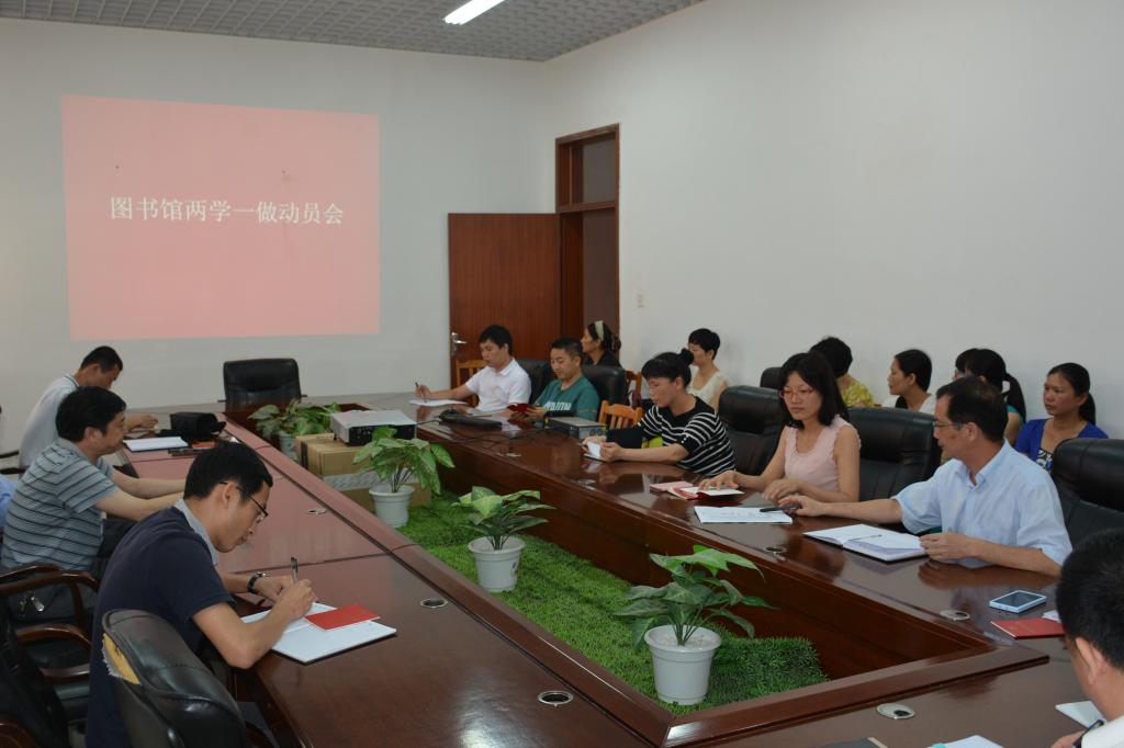 2016年5月31日,图书馆党支部召开“两学一做“动员会,图书馆党支部书记赖新优同志主持,全体党员参加会议。