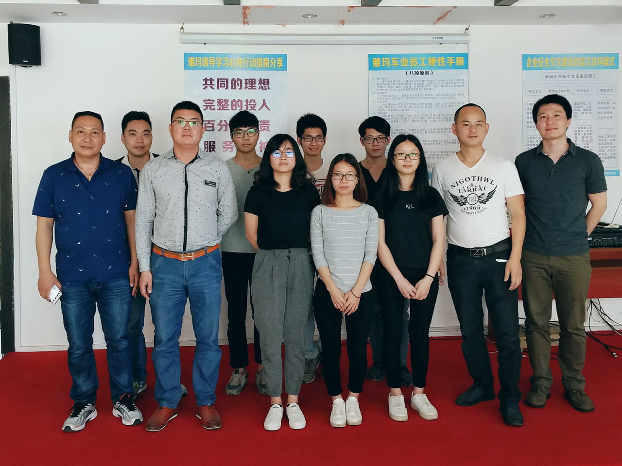 检查团在张清江主管带领下参观了雅玛公司的产品展厅,了解了各种产品的性能特点及销售情况。座谈会上,各位学生介绍了各自所在岗位的工作内容,并提出了学习、工作与生活上的一些问题,检查团老师和公司管理层对学生反映的情况都给予解释与说明。钟卓慈总经理表示,希望校企双方在人才培养、设计开发新款电动车产品等方面能有更深层次的合作。