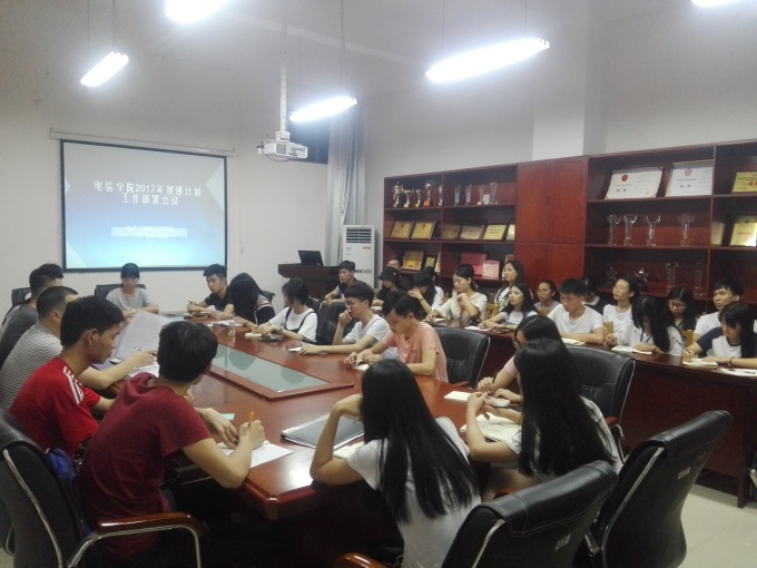 2017年6月5日晚,电信学院团总支在实训楼A208召开2017年“展翅计划”工作部署会议,出席的人员有电信学院团总支学生会主席团、部门正副部长、专业副书记及各协会会长、学生代表,会议由团总支书记杨日奎主持。