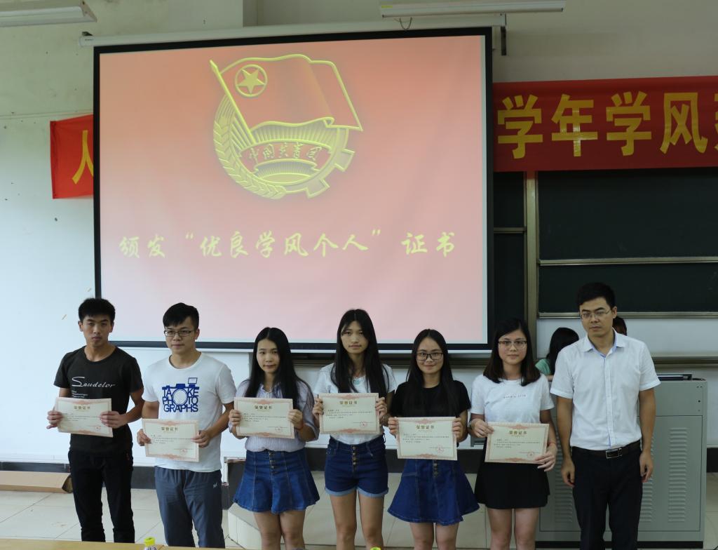 会议伊始,谢战锋副院长上台发表讲话,他全面总结了过去一个学年学风建设所取得的主要成果,分析了目前学风建设中存在的主要问题,对未来学风建设提出了目标任务。随后,学生代表15级数学教育专业1班吴江华上台发言,他认为开展学风建设活动和文明修身活动有助于大学生树立和培养良好的学习风气,鼓励在场学子响应学院号召,从自身做起,在学习和考试过程中自我监督,用实际行动促成校园良好学习风气的形成。紧接着,来自文秘专业的教师代表袁思强老师分享了学习经验,指出同学们可以通过找准学习目标,转变思维方式和参与各种实践的方式,在大学生活中鞭策自己不断学习,不断成长,努力争当一名优秀的大学生。最后,大会表彰了120个“优秀学风个人”、30个“优秀学风宿舍”和6个“优秀学风班”,以此鼓励在过去一年内在学风建设中表现突出的集体和个人。