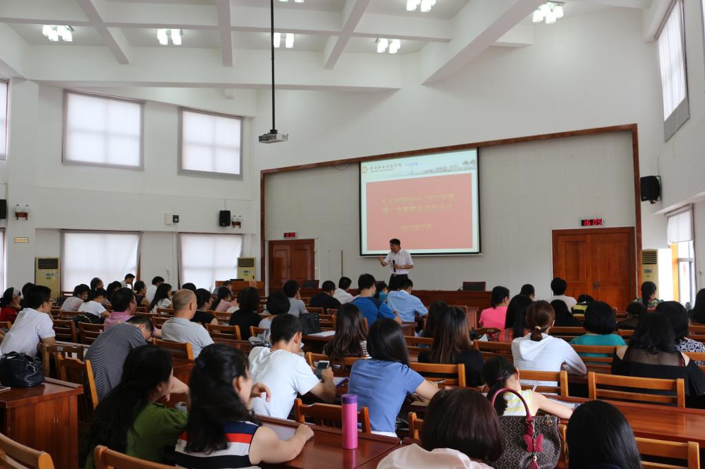 7月4日15点00分,人文学院全体教职工在行政楼楼C108召开2016-2017学年度第二学期期末总结会议,陈德清校长、唐汉芳副校长出席会议。
