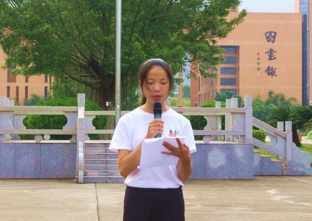 2015级高分子材料应用技术2班的陈思颖同学作为学生代表发言,她呼吁同学们做一个尊师重教、善于学习的好学生。