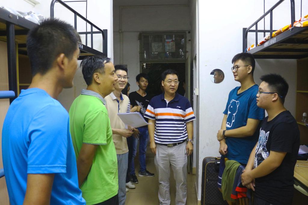为了充分、及时地了解新生到校后的生活情况,帮助他们尽快适应新的环境,9月16日开始,机电学院辅导员、专业老师和带班学长开始走访宿舍。9月17日晚,王小宁副校长率钟建坤院长等学院领导班子成员走访了新生宿舍,深入了解到新生需求,鼓励同学们在新的起点力争取得新的、更大的进步。