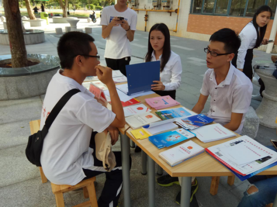 为迎接党的十九大创造和谐稳定的校园环境,进一步增强在校大学生的自我保护意识和维权意识,2017年10月10日下午,人文学院法律诊所的工作人员在指导老师的带领下在A区饭堂门口举行“出诊”活动,为学生解答法律咨询与法律援助。