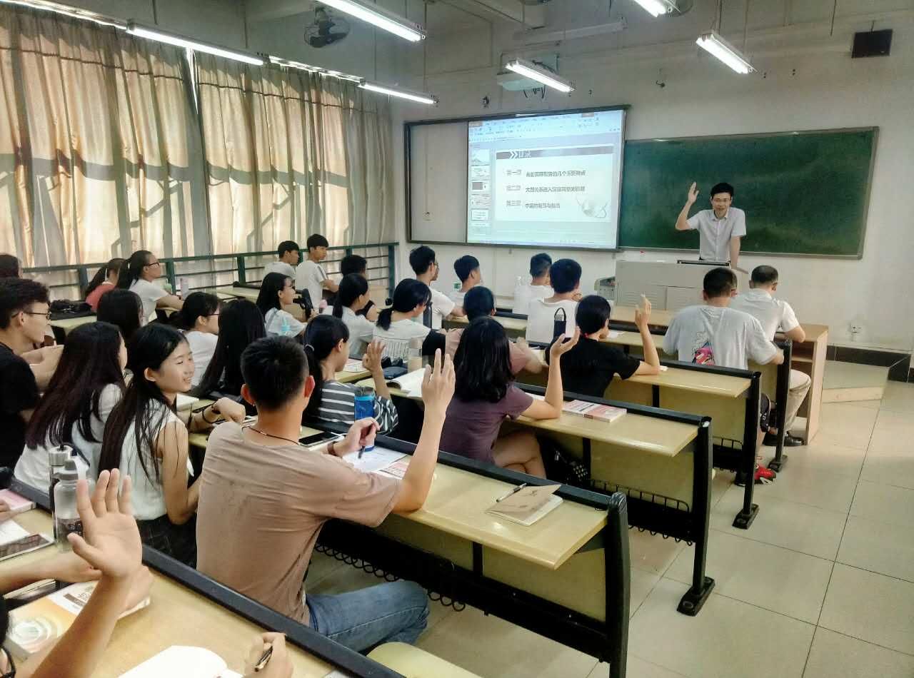 课堂上,杜伟祥首先从“风声雨声读书声,声声入耳;家事国事天下事,事事关心。”这一大家熟知的对联入手,鼓励学生在学习自己专业知识的同时,更要学会关注自身周边的时事政治。讲课中,杜伟祥从当前国际形势的几个重要特点,大国关系进入深度调整期,中国的智慧与担当这三个方面带领新生同学认真了解和熟悉了当前国际国内的主要形势以及大国之间的微妙关系。