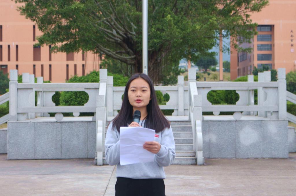升旗仪式结束后,来自2016级食品与营养检测1班的沈鑫萍作为学生代表发言,她对在第十三届田径运动会获奖的选手表示祝贺,号召同学们积极参与户外活动,增进同学之间团结友爱的情感,营造一个和谐的校园。随后,学院教师代表邱志文讲话中表示,希望即将进入毕业实习阶段的2018届毕业生们能够发扬学校的校训精神,为社会奉献更大的力量,希望全体师生以高度的使命感和责任感,高质量地完成相关工作迎接省示范校建设项目验收工作。