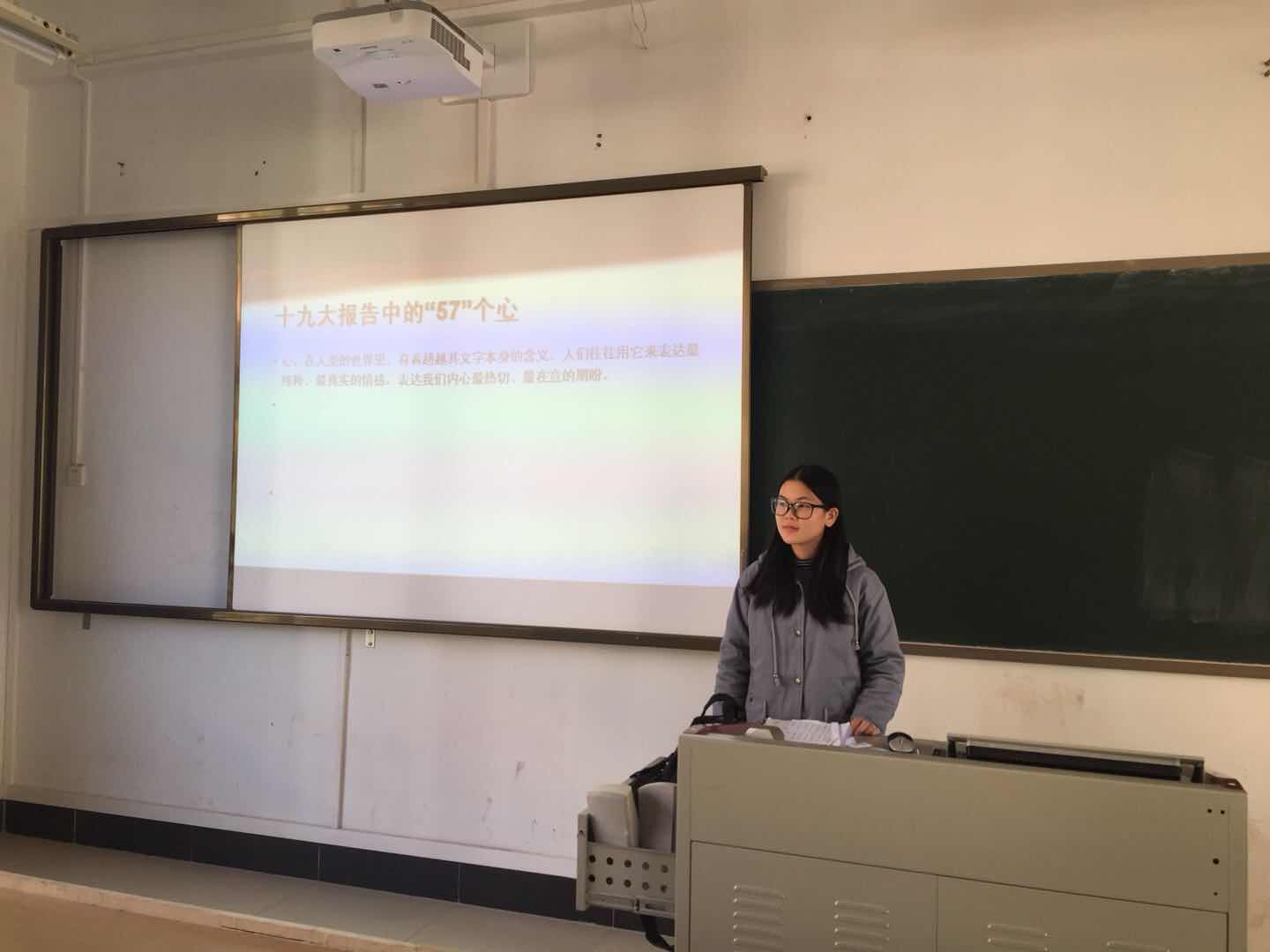为认真学习、深刻领会、准确把握十九大精神实质和丰富内涵,推进党的十九大精神进头脑、进课堂,思政部分别在《毛泽东和中国特色社会主义理论体系概论》《思想道德修养与法律基础》每次课前十分钟开设“党的十九大微课堂”,安排每个班学习小组学生代表上台“授课”,分享“95后心中的十九大”,讲述自己的中国梦。