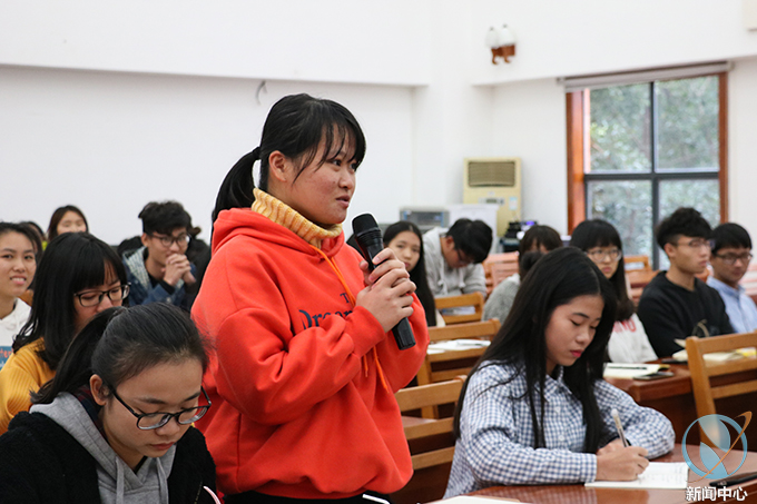 当天,周焕以“新闻写作是一门手艺,记者最重要的是能力不是写作”为题,结合自身丰富的人生经历、生活体验与十余年的新闻采访写作经验,全面阐述了新闻采写的方法与技巧。对会议、培训、讲座、调研、参观、运动会等校园新闻采写方法进行了总结,详细地向同学们介绍了每一类型新闻稿件的创新写法。授课中穿插了互动环节,同学们就校园新闻采写过程中出现的问题和困惑进行提问,现场气氛活跃。