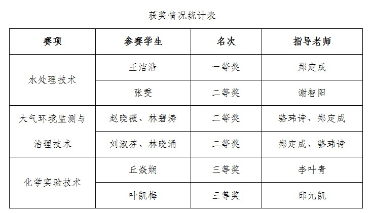 我校师生在2020-2021年度全省职业院校学生专业技能大赛水处理技术等赛项中再创佳绩